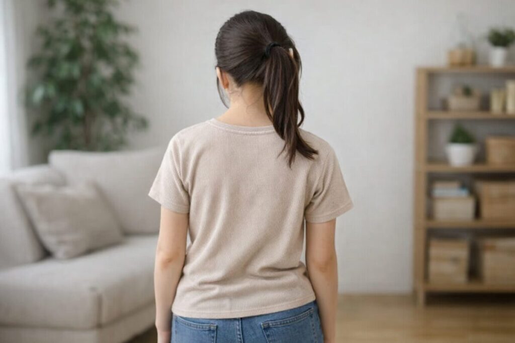 服を着ているとわかりにくいですが、お風呂上がりや着替えのときに背中のラインが左右で違って見えることがあります。肩甲骨の位置や背中の高さの違いなど、普段は見えない部分にヒントがあることも少なくありません。