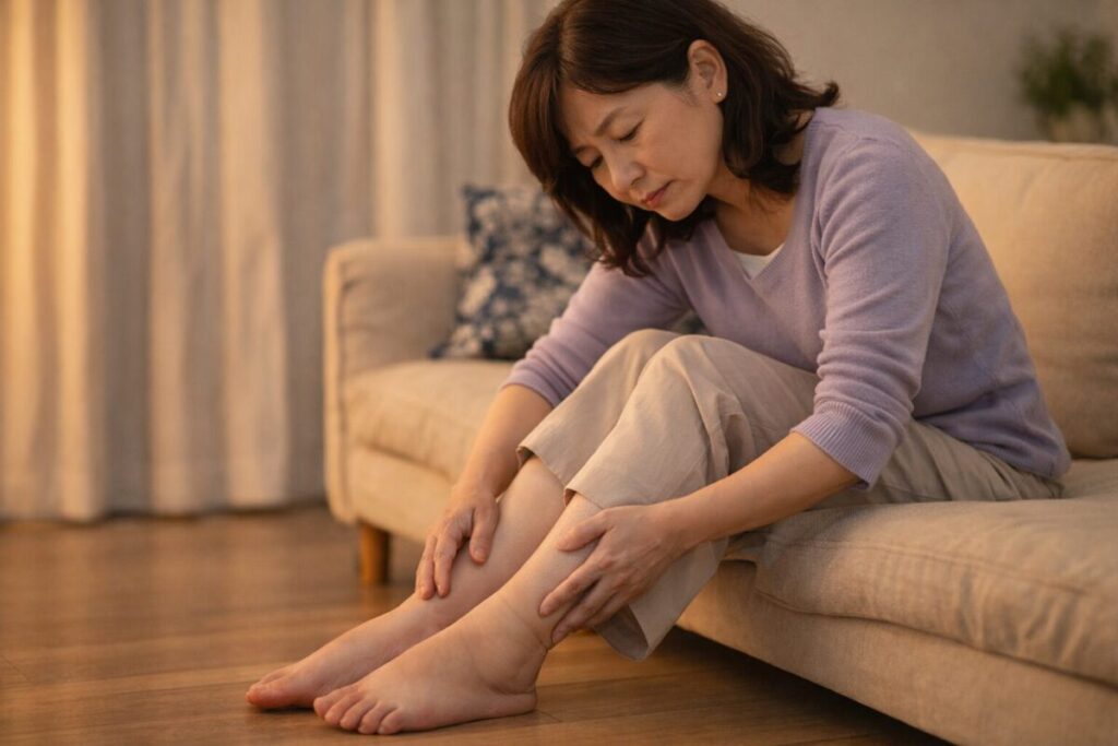 もし、足を組むのが当たり前になっているなら、脚を組む癖と体のバランスの関係を解説した記事も参考にしてみてください。座り方の癖と足の不快感がどうつながるのか、見えやすくなると思います。